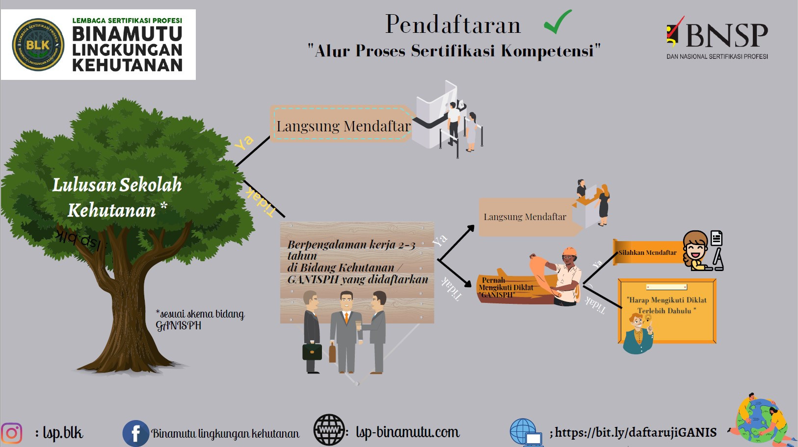 Q : Apa saja persyaratan mengikuti uji kompetensi di LSP Binamutu Lingkungan Kehutanan?